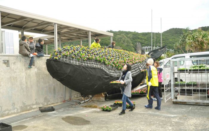 やっと寒くなった座間味島です。本日も海上時化の為中止になりました。天気には敵いませんね、雨は降っていないので今日は、港にある花くじらを準備しました。座間味島への定期船から見えると思います。午後からは太陽も出るようになったので、明日はウォッチング行けるでしょうか! 恵太