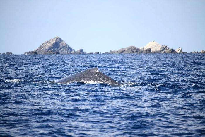 本日も出港できました!天気も良く視界も良いのですが、なかなかクジラが見つからない!しかし調査船の船長さんが港の近くの無人島付近で親子クジラを発見してくれました! 1月7日にもウォッチングした親子クジラでした。早めに出ていたのでキープしてもらいましたが、スピードが早い早い。ウォッチング船が到着してもそのスピードは落ちることなくどんどん南下していきました。 お客様的にはもう少し近くで見たかった感じだと思います。ですがクジラを追いかけて座間味が嫌いになってもらうと、座間味に来なくなるかもしれないので優しく遠くから見守りましょう。同じころ座間味島の北側にも2頭見つかりました。 明日も波は穏やかなのでたくさん見つかればいいですが・・・・。 恵太