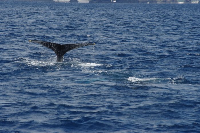 本日は風も落ち着き出港できました!朝から近くに2ヶ所発見しました。2ヶ所に分かれてウォッチングしていると、近くにもう一か所見つかりました。内2か所は親子で10分間隔で出てくれるのでウォッチングしすかったのですが、もう一か所は20分から25分も出てくれなかったです。2頭の大きなクジラで船の近くでゆっくり泳いでいました。最終的にはほとんどの船がこの2頭を見に来て、帰りにまた親子を観て帰るという贅沢なウォッチング内容になっていました。午後もブロー間隔の長い2頭に向かいましたが20分のブロー間隔が30分になっていました。その他にも沖に4頭、フェリーの乗組員からの情報など、全部で10頭は南の海域に見つかりました。 やっと数が増えてきてよかったです。 恵太
