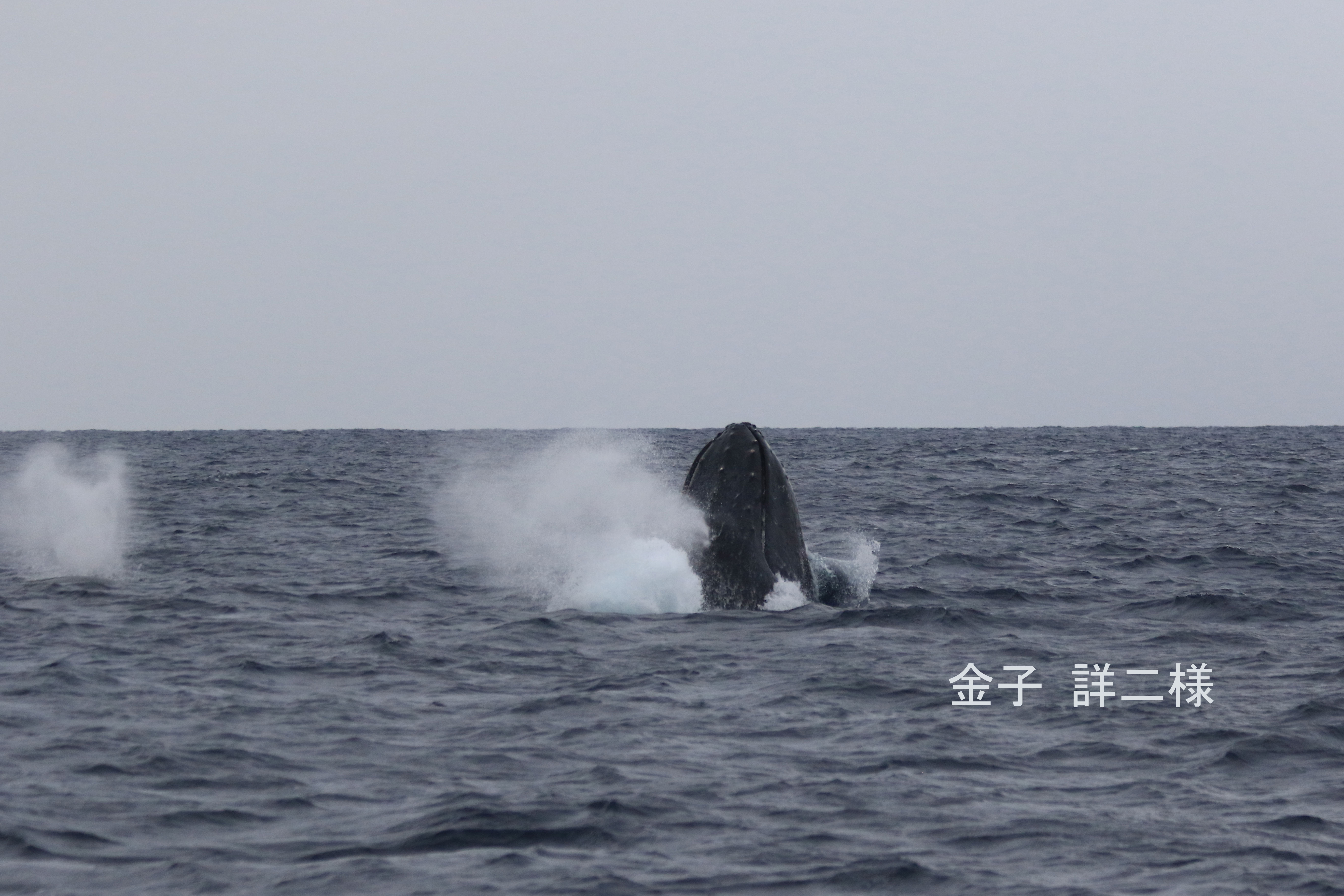北の海域では約15頭のクジラを発見しました!本日は視界が悪く、諦めかけたそのとき!チャンスの女神が・・・いえ、クジラの神様が降臨しました!!笑 実は、展望台の真下で親子クジラが『パッタンパッタン』とペックスラップをしていました!展望台から聞こえるくらい近かったです。ブローもしっかり聞こえました!!ハイテンションです~!!その後・・・大迫力のメイティング!!その真っ最中に朗報が!あの有名な清船長がシワハイルカの群れを発見!ほんとに素晴らしいです。、、、ゴンドウと間違っちゃった事は内緒ですよ、みなさん!笑 お茶目な清船長でした~★