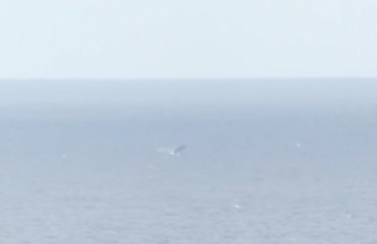 太陽が雲の切れ間から顔を出し! ぽかぽかです!! 朝からクジラ探しの練習に出た新人君が 見つけてくれました! 証拠写真を撮ろうと僕もあわてて 展望台へ向かうと。 ブリーチでご挨拶!! 双眼鏡にスマホを当てて動画を撮影! どうにか撮れました!