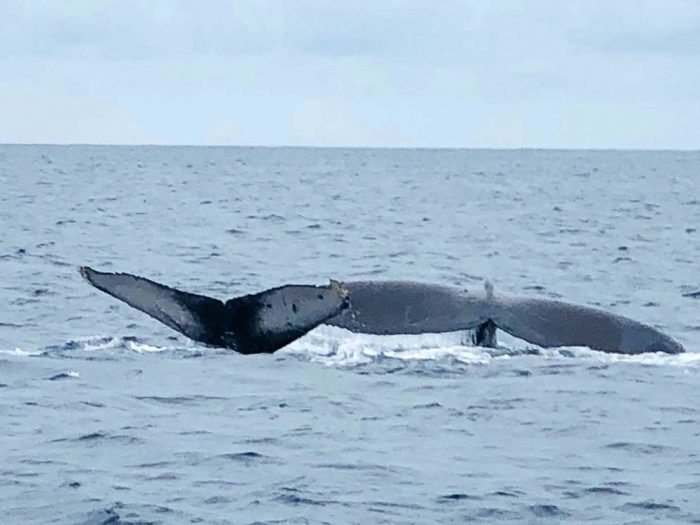 今日は朝から降ったりやんだりの雨でした。 雨が落ち着いた頃に山に登って探鯨開始!! 雨が降っているのでクジラの見える範囲は少なくなりますが、 目を凝らしてしっかり探します。 しばらくして船長さんが来て一緒に探していると 「あれはくじらじゃないか?」 流石船長さん、長年やってるだけあります! 双眼鏡で探すとブローと背中がみれました!! お客さんが集まり次第すぐに出航! 船が到着してしばらくすると、船から200mくらいの場所で クジラのブローが見れました。 その後、クジラが潜水し、見えなくなりました。 15分後別の場所で2頭のブローを確認しましたがその後 姿を現さず、、、 午後、もう一隻の船が合流して一緒に探しましたが発見できず、、、 午前中に出港した船は、クジラを探しながら帰港しましたがいませんでした。