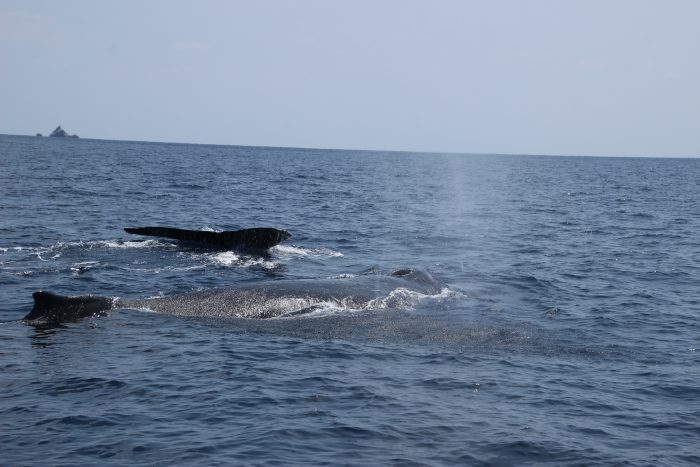 今日は波一つ無いベタ凪からの探鯨スタート! クジラが少なくなってきているので、 稲崎展望台の外地展望台から北と南のクジラを 探します。 稲崎は1時間ぐらいクジラが見つからず。 早朝の船も出ていたので焦りながら探して いるとようやく1頭発見!! 時々ブリーチもしてくれ、楽しそうかと 思いきや、北上を始め見えなくなって しまい・・・その後クジラを確認すること ができませんでした(泣) 一方、外地は親子を含め7~8頭のクジラを 発見!! 今日のウォッチングは南で行われることに なりました! 僕は北でクジラを探していたので非常に 羨ましい・・・(笑) メイティングをしていたクジラもいたようで 船長さんもお客さんも大興奮! 親子も見れて大満足な1日になりました!