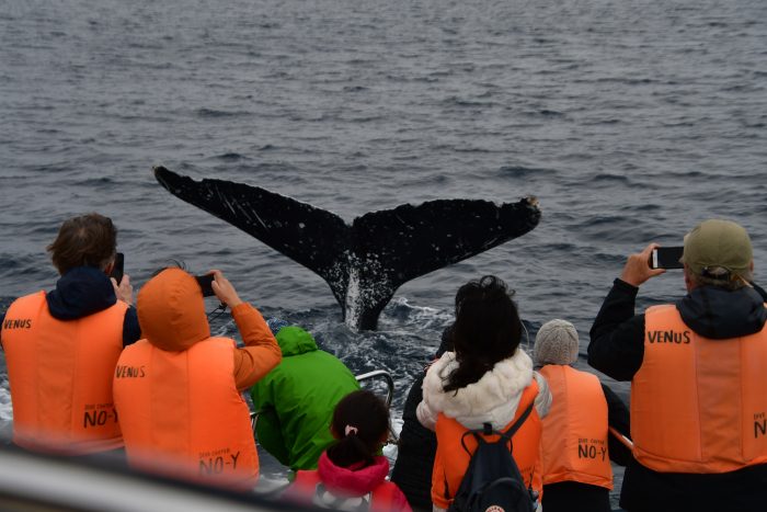 午後のウォッチングは北のポイントへ行こうとしましたが まだ波が高く断念・・・ 海峡へ移動した親子エスコートを見ることに(^^) 仔クジラがたっくわったりしていたそうです!! 海が最近荒れているせいなのか海峡内や 静かなところに親子クジラが多い感じですね(笑) ちゃんと海の状況に合わせて 波のないところに避難しているんでしょうね(^^) 明日は雨予報ですがホエールウォッチングツアーできますように!! なり