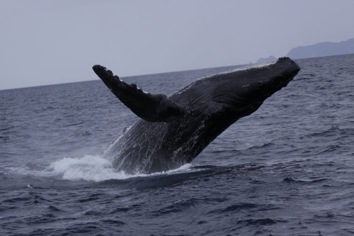 本日は久々のべた凪&視界良好! 伊江島だけじゃなく伊平屋・伊是名島も見えるくらい!! 今日は早朝ウォッチングからのスタート! 北のポイントで、探鯨開始後すぐに発見(^^) すぐに船長に連絡してウォッチング開始! そこのクジラは親子エスコートでした! 子クジラがヘッドスラップなどをしてくれました~! 最初は渡名喜の方にいたのにどんどんと東の方に移動、 最後はウチャカシの方まで移動していました。 早朝ウォッチングが終わり午前がスタートするまでに 1頭2頭の2ポッド見つけました。 午前は大人2頭の方を案内したら 船長さんから親子クジラだよー! っと連絡が入り、 あれ?なんか違う感じがする・・・・ そしたら近くで2頭ブロー確認! 近くに2頭と親子がいたようでした! しばらくしてだんだんとクジラが集まってきて 曽根周辺には3~5ポッド確認できました! 途中3頭のメイティングもあり、 曽根の周りにクジラが多くて、どれがどのクジラか わからなくなりパニック状態(笑) 船長さんが帰ろうとしたとき急にクジラのブローが 増え始めました! 船長さんが見に行くと 「5頭メイティング!!」と連絡がありました!   帰ろうと思っていたのに船長は帰れなくなり 5頭を追うことに! 迫力のある戦いを見ることができたそうです! 午後もメイティングポッドに案内しましたが、 船が着くころに分かれていて3頭になっていました。 けどクジラ達はテールスラップなども見せてくれたそうです! 南のポイントでは午前も午後も親子クジラがプカプカ(^^) ゆったりと海峡の中を泳いでいたそうです(*^_^*) 久々に海の状況も良く、クジラもたくさんいたので良かったです!!!