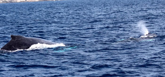 海は波が高かったが、ザトウクジラ親子に会えた。感激。ずっと憧れていた。思いっ切ってツアーに参加。