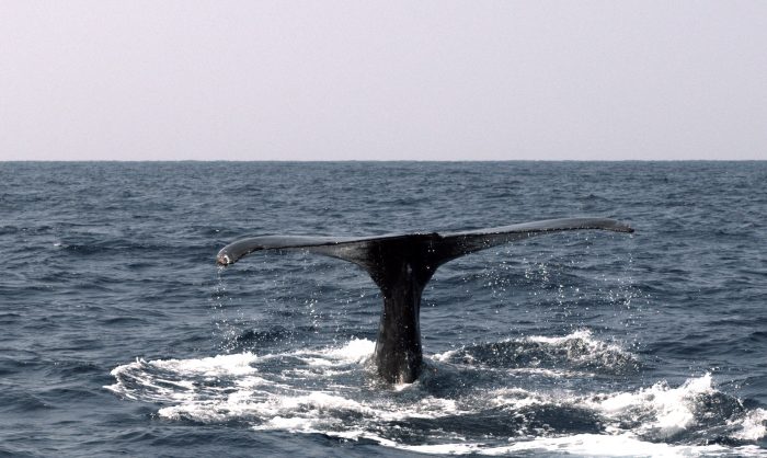 本日は久々に晴れました~(^^) しかし視界が最悪・・・ PM2.5の影響です(゜_゜) クジラの方はというと、渡嘉敷の南のほうで かすかに数本のブローが見えたので 協会に連絡し、出航! 船長さんをポイントまで案内し、頭数を聞いてみると 親子にエスコートが3頭、合計5頭のメイティングでした! 雄クジラ達の戦いは激しく、 クジラ達はどんどん西へ進み、下曽根の西まで移動、 展望台からは見えなくなってしましました。