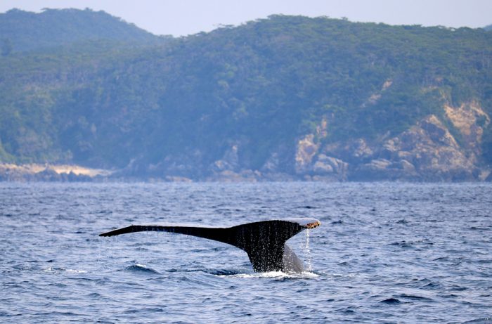 ポイント近くに着くと船の1時方向300m先でブロー!