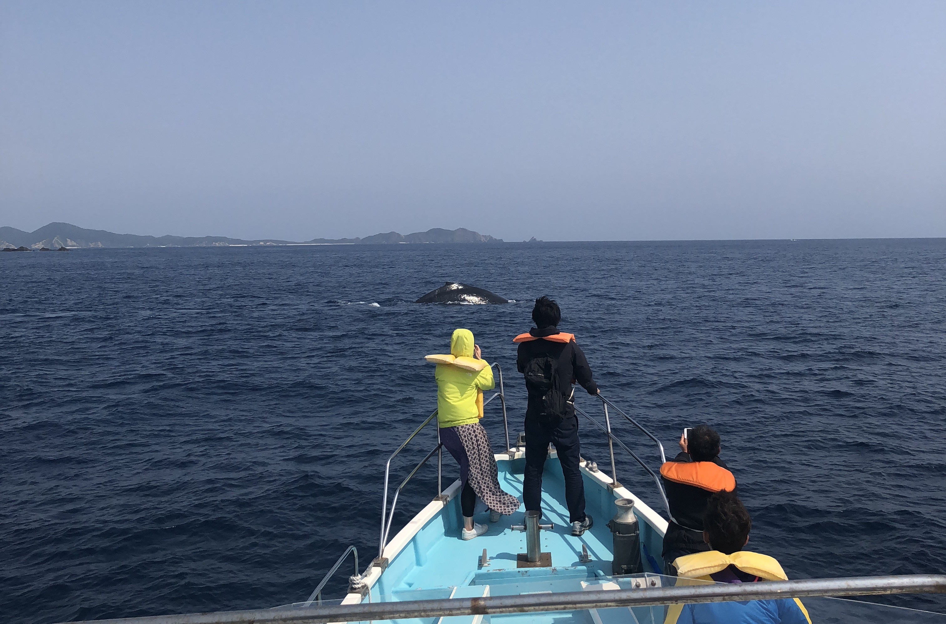 このクジラも1頭のシンガーで最終的には奥武島の東で落ち着きました。 潜ると船に反響してクジラの声が聞こえます! 自分が展望台を降りるまではゆったりしていましたが、事務所にいると船長の歓声(奇声?)が!連続でブリーチでもしたんでしょうか? クジラはとても少なかったですが、しっかり見ることができたようでよかったです! やっぱり暖冬の影響で帰るのが早いのかな?無事シーズン終了までもってほしいですね。 かい